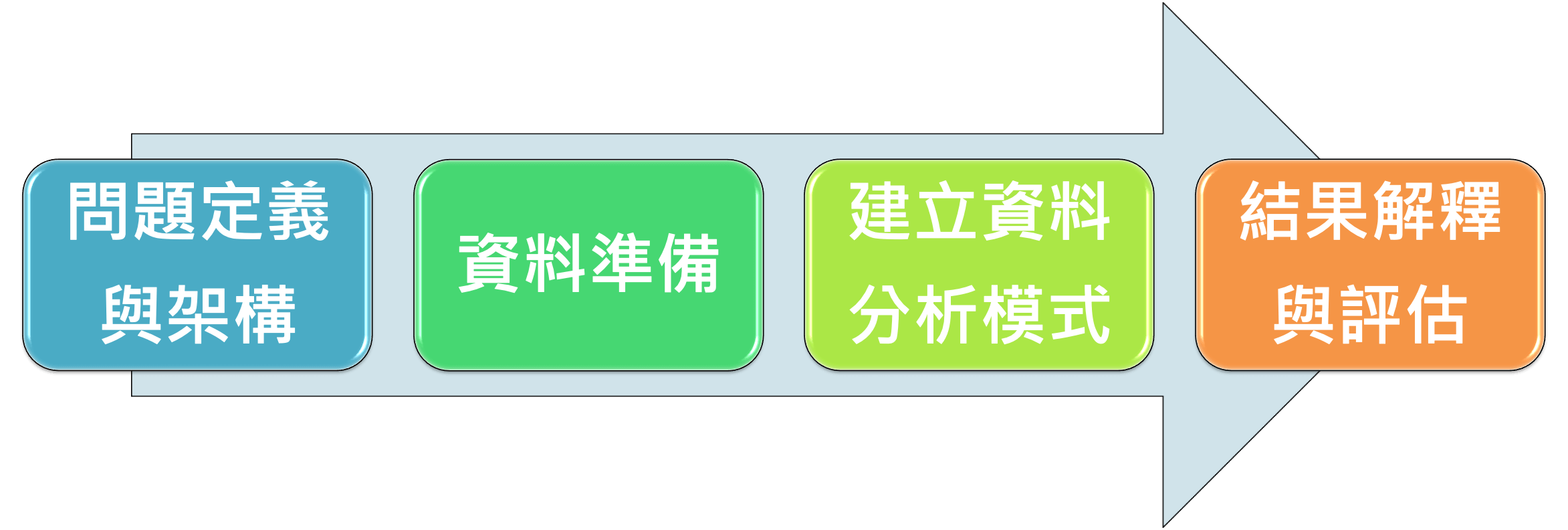 當然,這四個階段其實並不是說,你從第一個階段到第二階段,接下就一定會到第三個階段。很多時候你可能在第二個階段覺得有問題的時候,這時候便會再回到第一個階段。所以這個四個階段,它有點類似像是遞迴式的,並且它也可以再往回到前面的階段再去做更進一步的優化,再去做更進一步的準備,然後產生出下一步更優秀的資料結果。